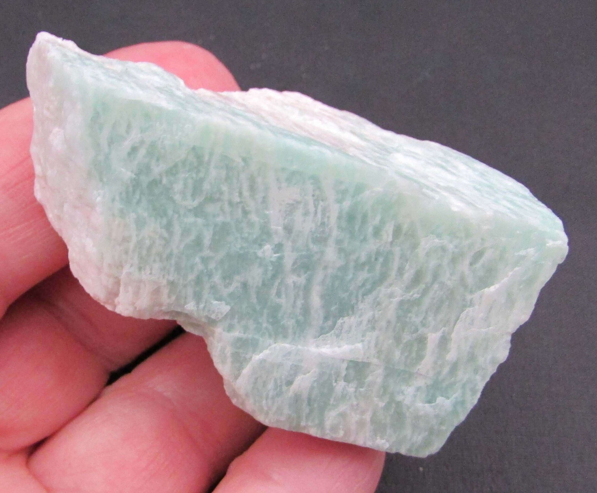 Amazonite is the Stone of Truth and Courage. It has a soft, subtle energy that helps dissolve blocks in your Throat, Heart, and Root Chakras.