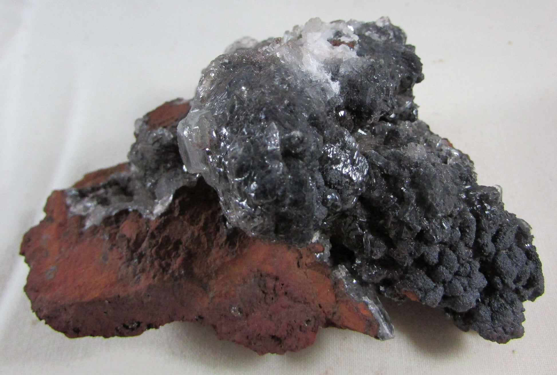 Black Calcite, Colorless Fluorite, and Limonite Combination: