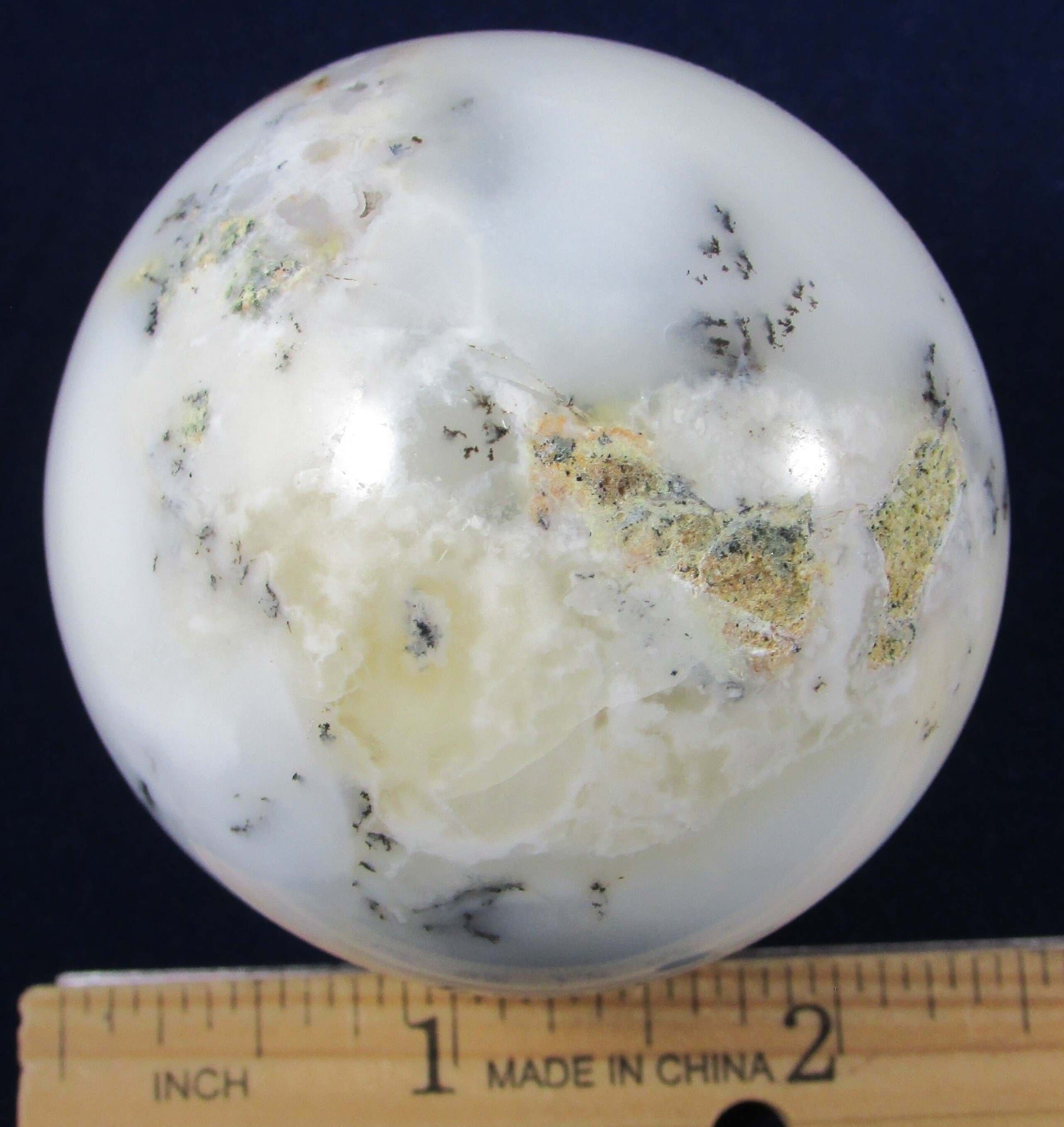 Dendritic White Opal Sphere - Stone of Spiritual Growth Self-Expression