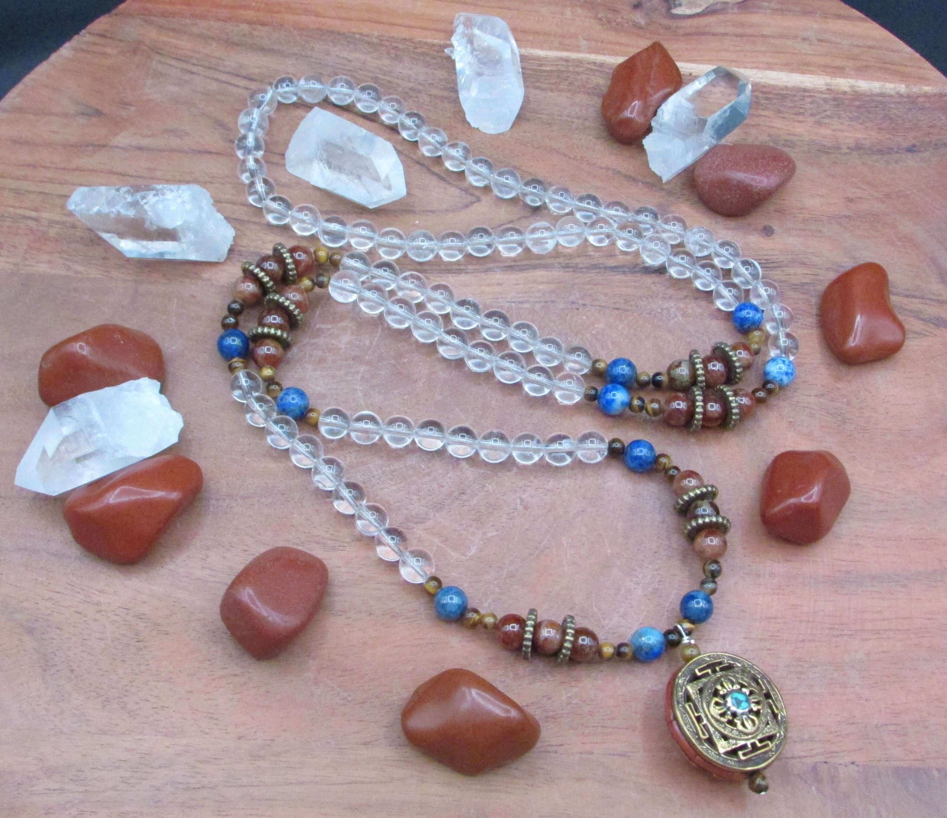 Good Fortune Mala | Garnet, Lapis, Tiger's Eye & Quartz Crystal Necklace