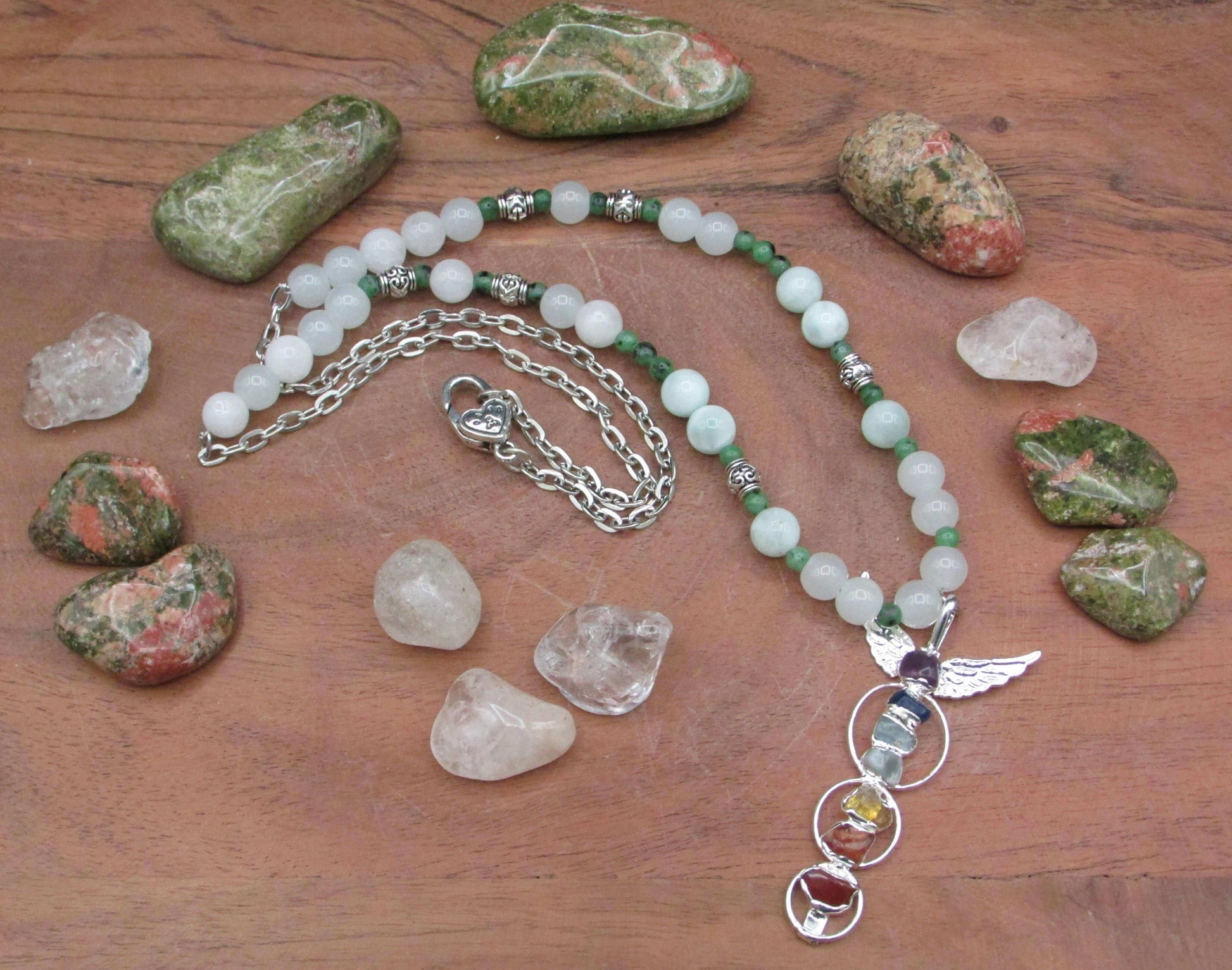 Crown Chakra Crystal Healing Necklace - Green Angelite & White Jade