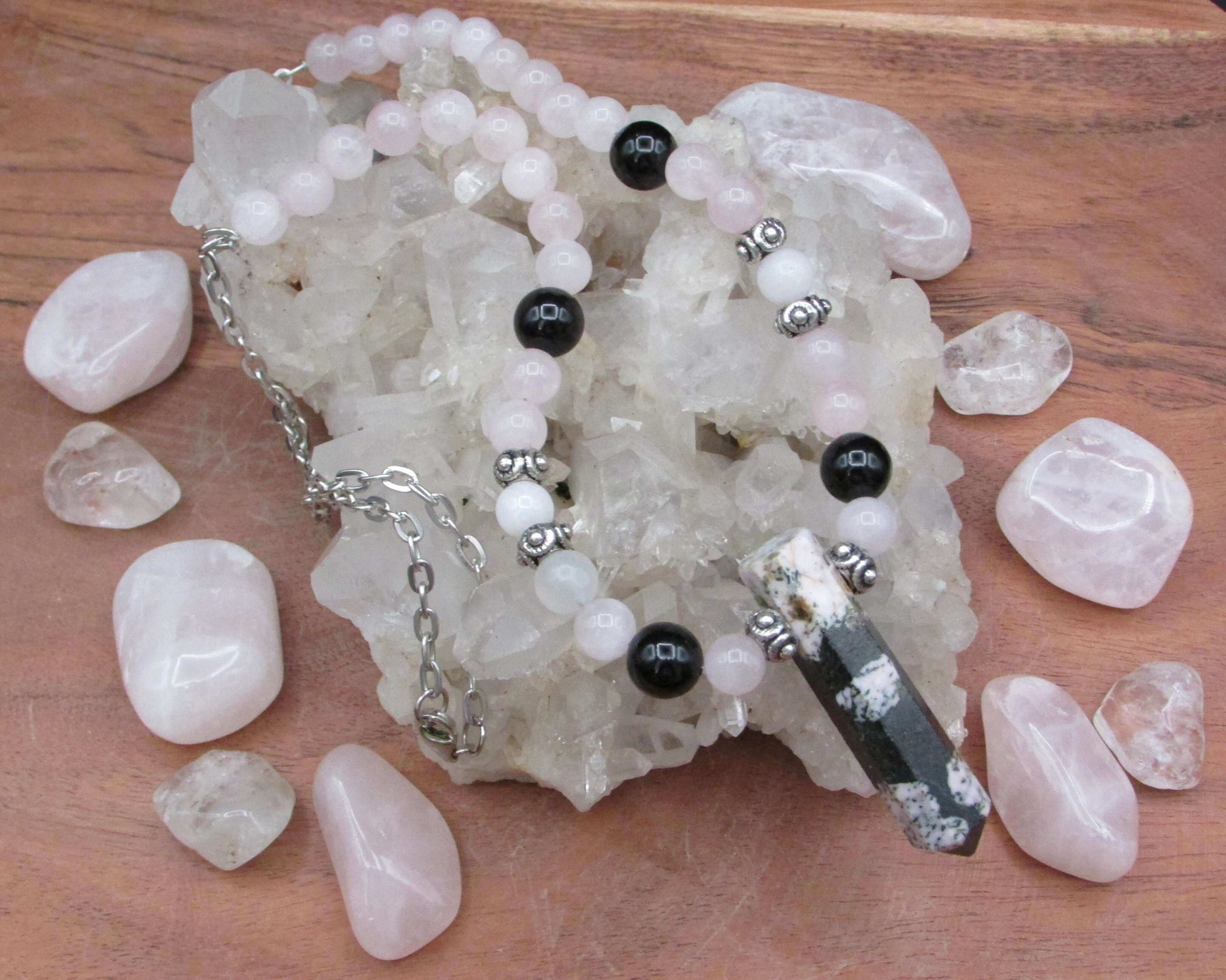 Harmony Crystal Healing Necklace - Rose Quartz & Black Tourmaline Protection