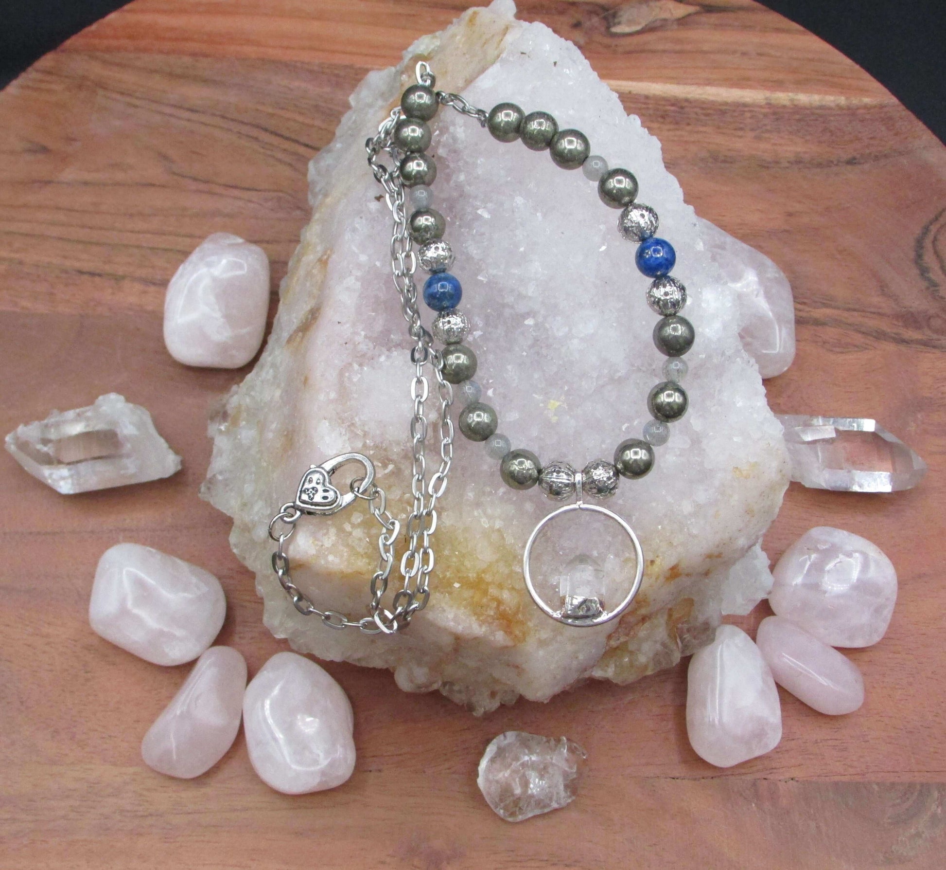 Prosperity Crystal Necklace - Pyrite & Lapis Lazuli with Quartz Pendant