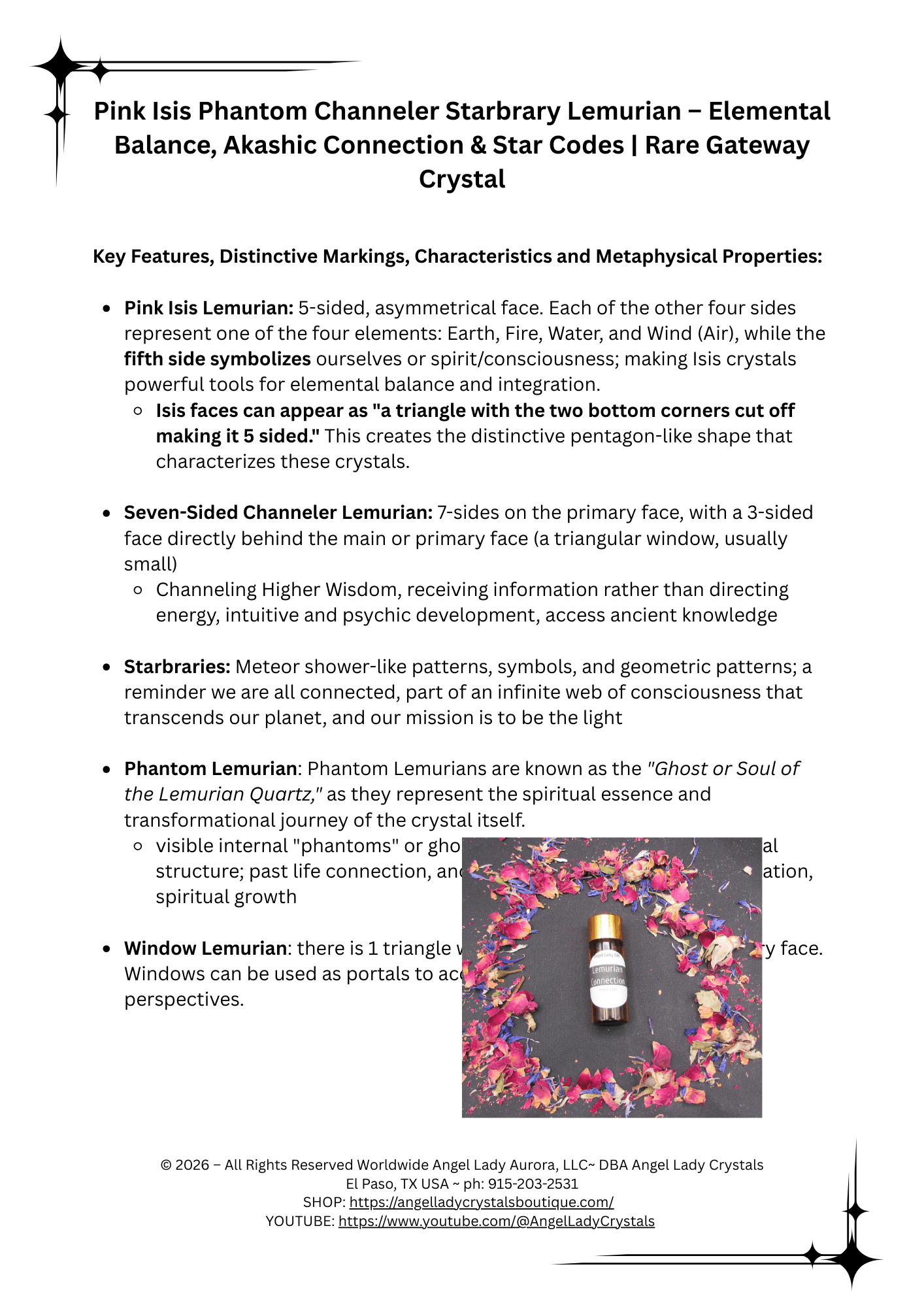 Every Lemurian Crystal you adopt from Angel Lady Crystals arrives as a complete experience—not just a single stone.