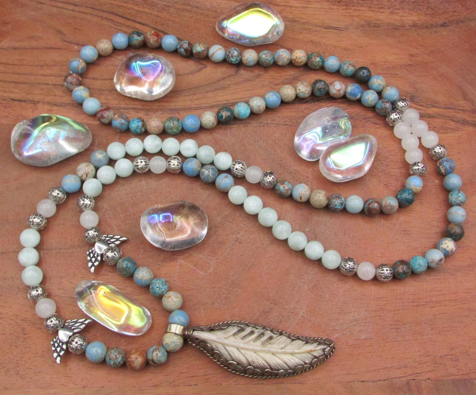 • Green Angelite (Angel Stone) - The Stone of the Angels opens channels for telepathic communication and angelic guidance. Cleanses the aura while restoring harmony and balance. Raises conscious awareness while maintaining deep serenity. Supports healing, forgiveness, and divine protection while encouraging authentic self-expression.