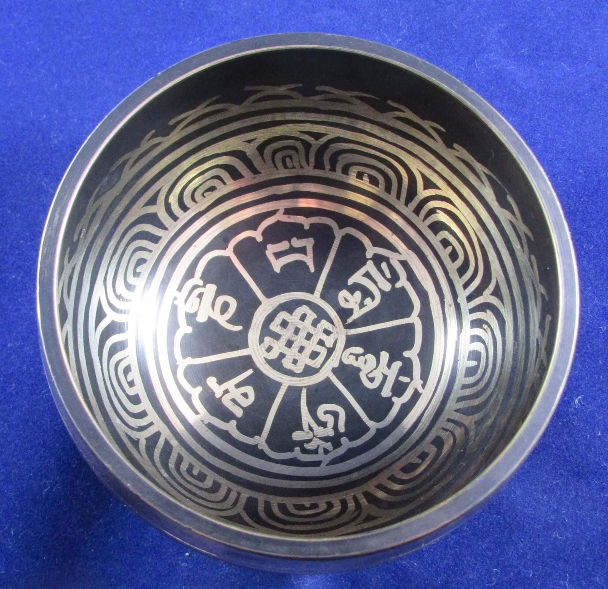 Your Black & Gold Mani Padme Om Singing Bowl is both a spiritual instrument and an art piece. Clean only with a soft, dry cloth to preserve the distinctive finish. Wrap and store in silk, velvet or soft fabric, when not in use to protect the golden mantra etching and maintain its elegant appearance.
