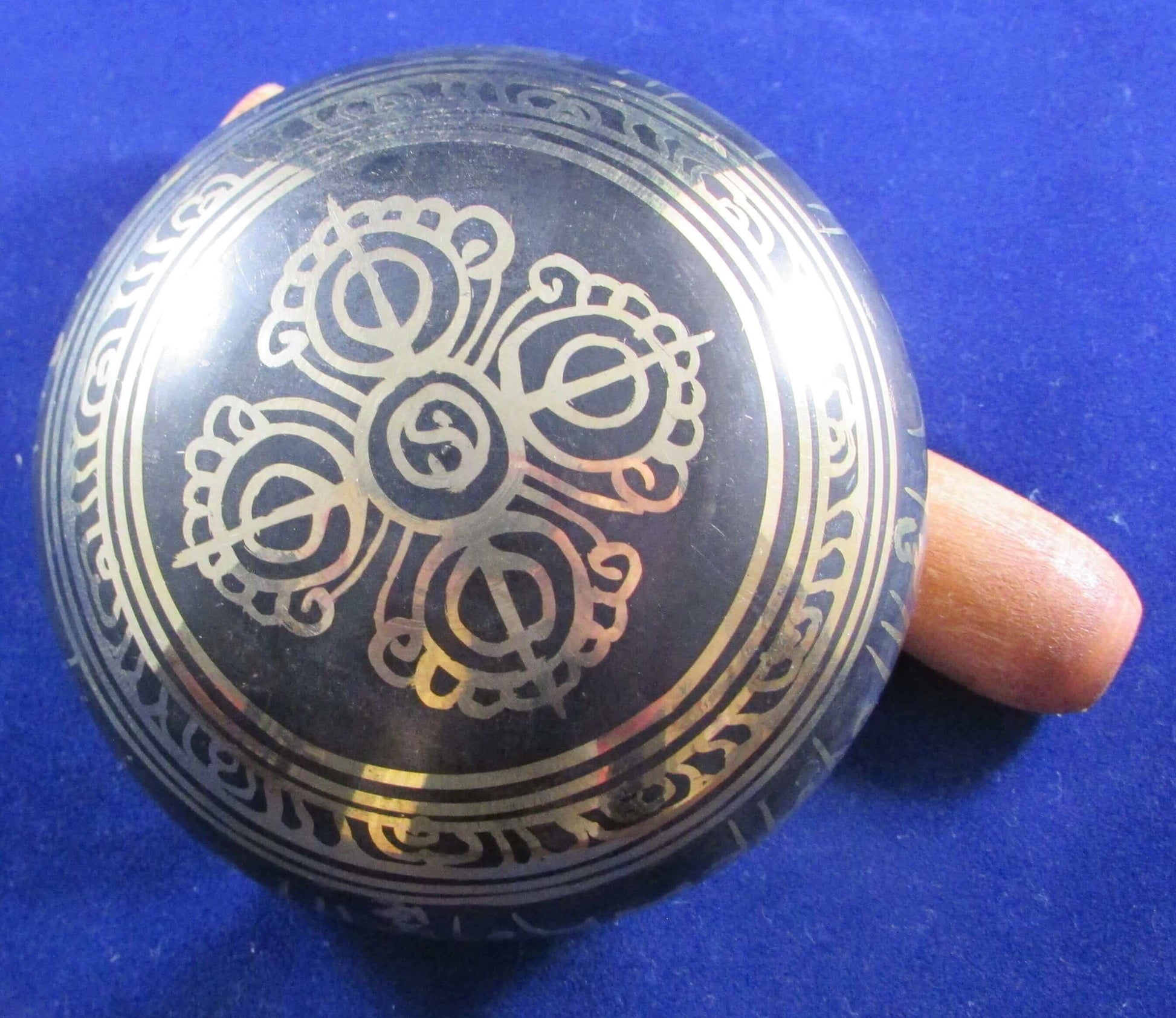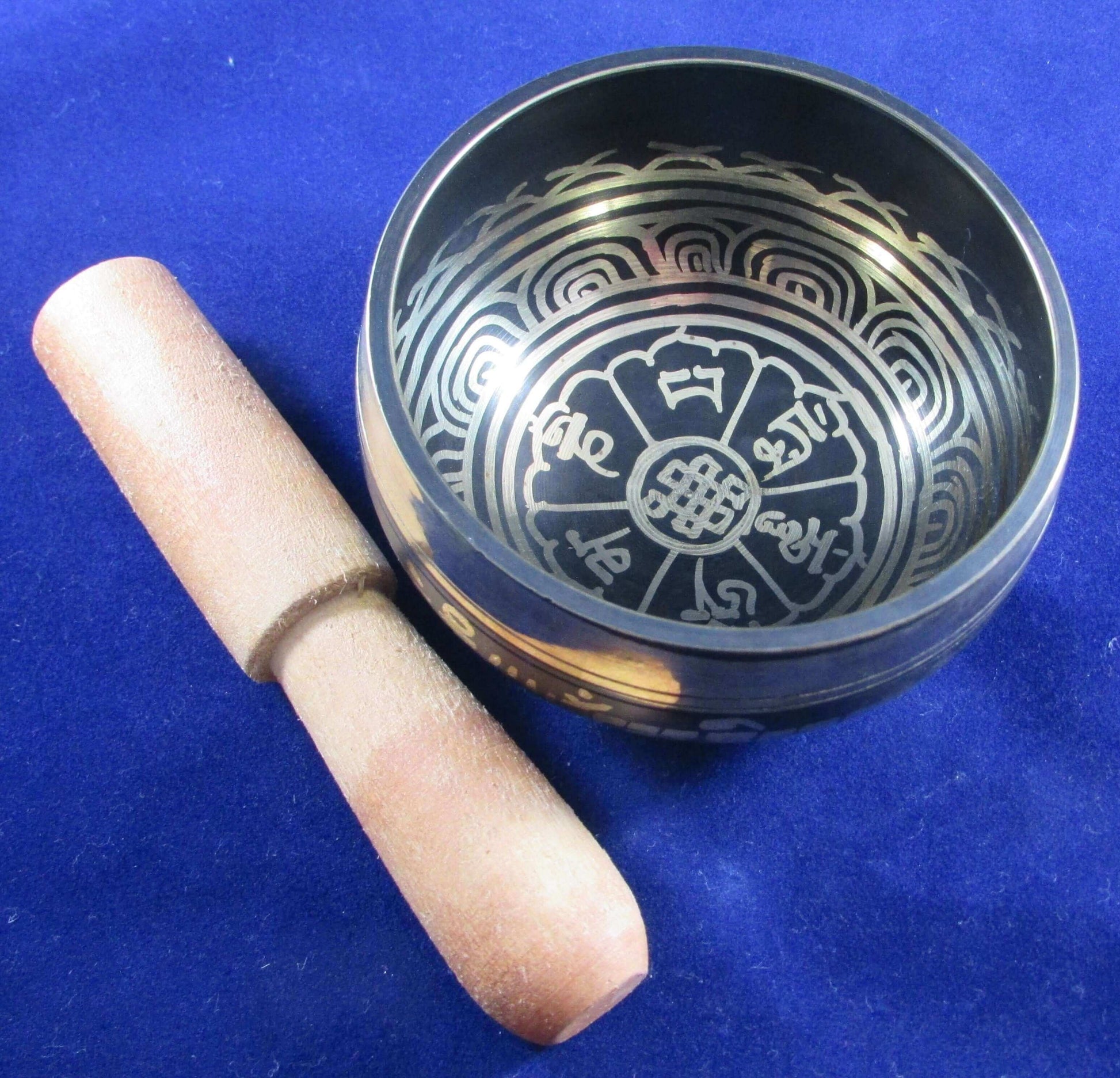 Black & Gold Mani Padme Om Singing Bowl - Himalayan Sound Healing Instrument